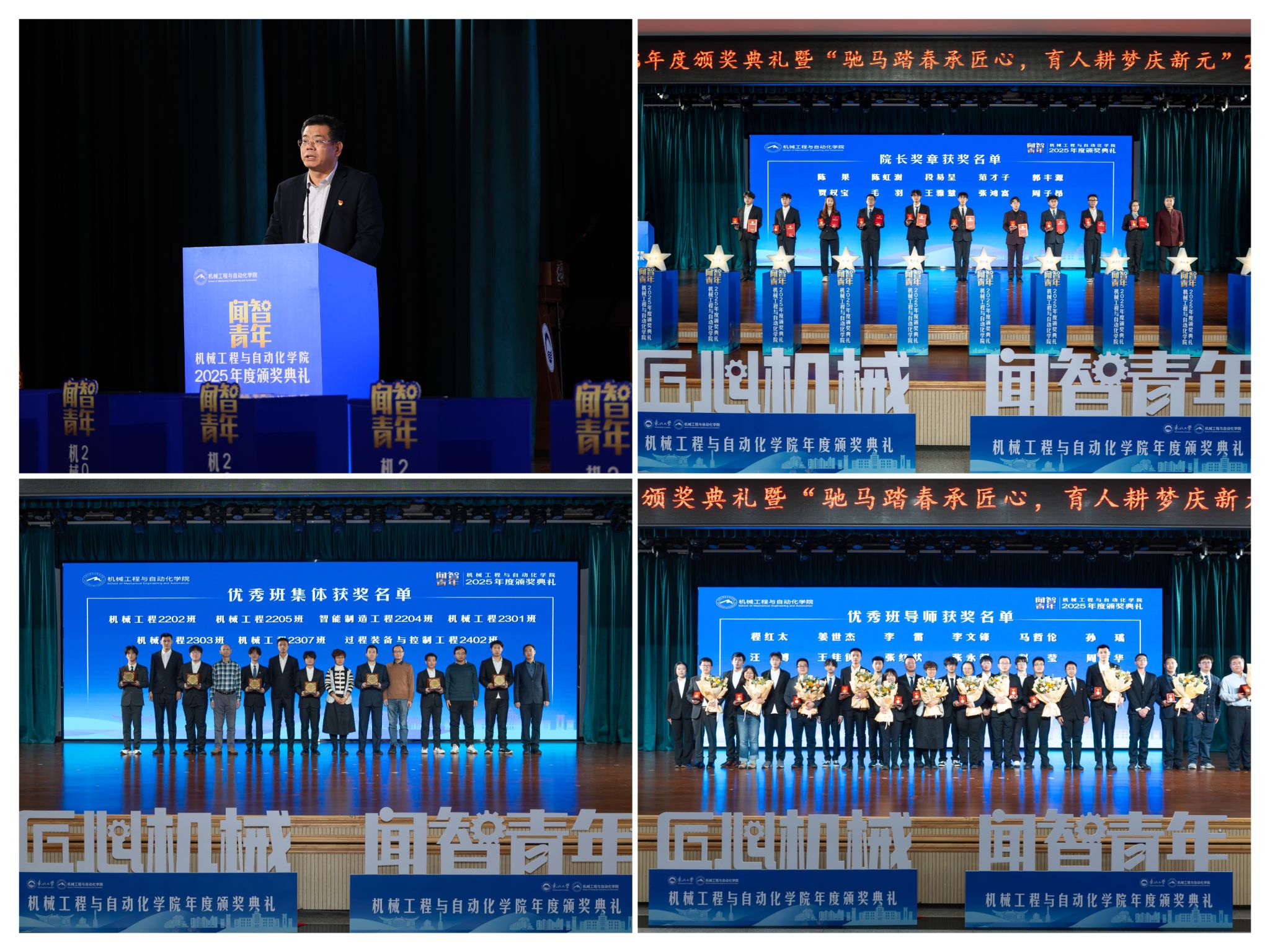 学院党委郝建山正在致辞中系统回首了一年来学院取得的主要成绩。并正在环节科研范畴实现标记性冲破,获得国度严沉专项支撑。同时,学院成功引进增材取激光制制范畴领军团队,稳步推进学校新增学位点扶植,为久远成长奠基根本。正在人才培育方面,学院学子表示凸起,研究生学术丰盛,正在“挑和杯”“中国国际大学生立异大赛”等多项赛事中斩获国度级项,结业生就业率持续连结高位,展示了全面成长的优良素养。郝建山阐释了“闻智青年”品牌的育人内涵,勉励全体师生胸怀“国之大者”,将小我成长融入“制制强国”计谋,过硬本事,怯于立异创制,勤奋成为担任平易近族回复大任的时代新人。副院长罗忠表扬决定。颁环节分三轮顺次进行。起首颁布的是“院长章”,刘云飞为毛羽等10名正在专业进修、科技立异、社会实践等方面表示杰出的学生颁布章。随后颁布“优良班集体”项,班导师代表为7个正在班风、学风及凝结力扶植中成效显著的班级颁。最初,仪式聚焦育人一线论理学生代表向获评“优良班导师”的教员们献上鲜花取荣誉证书,表达诚挚感谢感动。“院长章”获得者代表毛羽连系科研竞赛取意愿办事履历,讲述了“道阻且长,行则将至”的成长;“优良班集体”获代表豆煜轩分享了班级凝心聚力、正在“闻智匠心 共话青蓝”出格环节,优良班导师马哲伦取所带班级学生代表刘定佳同台交换,从分歧视角展示了师生间思惟引领、学业互帮、讲授相长的温情互动,彰显了育人一线的深挚交谊取结实成效。据悉,“闻智青年”是机械工程取从动化学院出力打制的文化育人品牌。本次颁仪式既是年度的集中展现,也是典型树立、激励朝上进步的主要平台,旨正在指导全体学生以先辈为楷模,坚想、夯实专业根本、锻制立异能力,勤奋成长为具有家国情怀、全球视野取创制活力的杰出工程人才,为学校“双一流”扶植和高质量成长注入芳华力量。